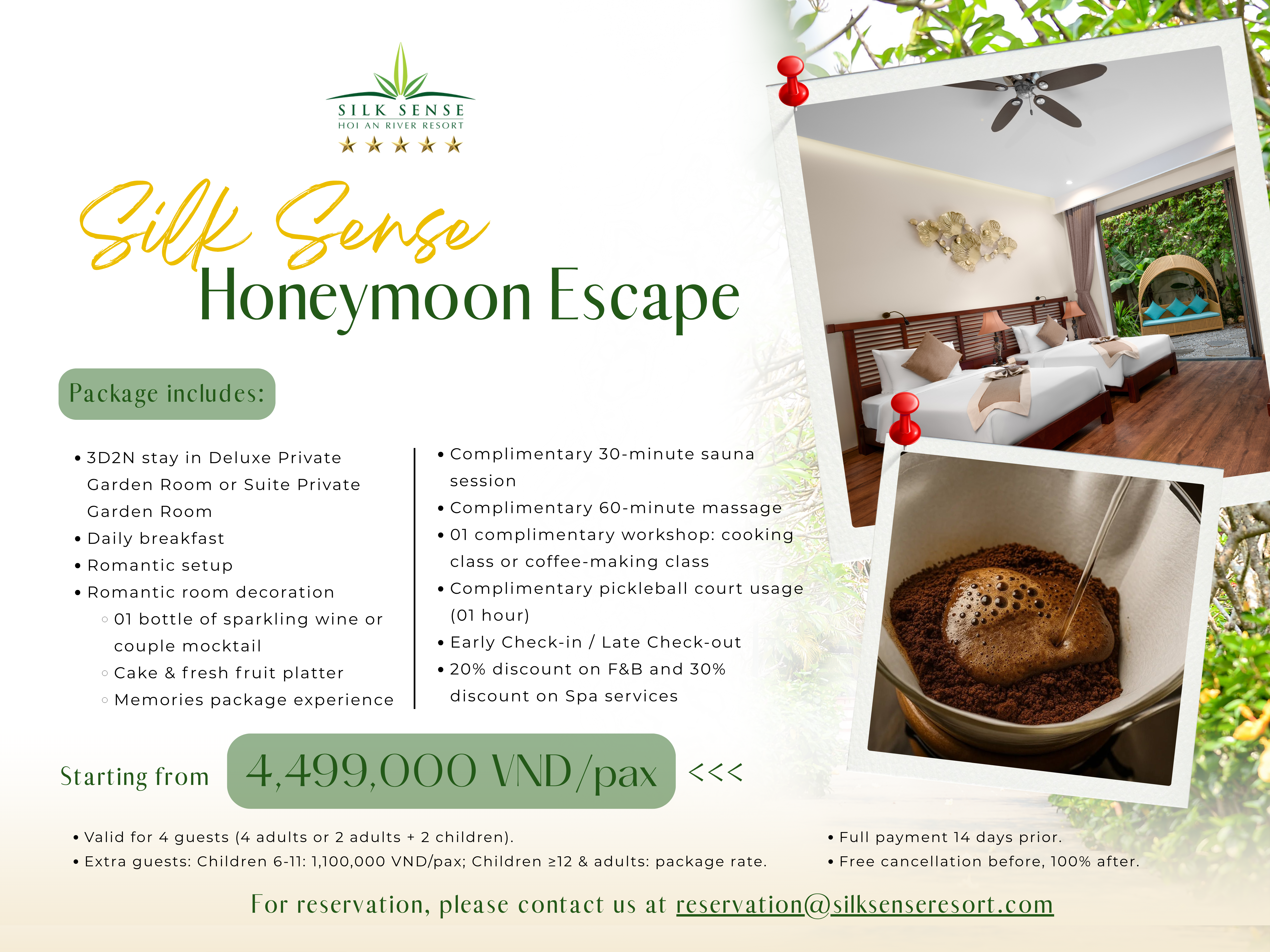 This offer is limited, kindly contact +84 96 126 63 63 or email reservation@silksenseresort.com